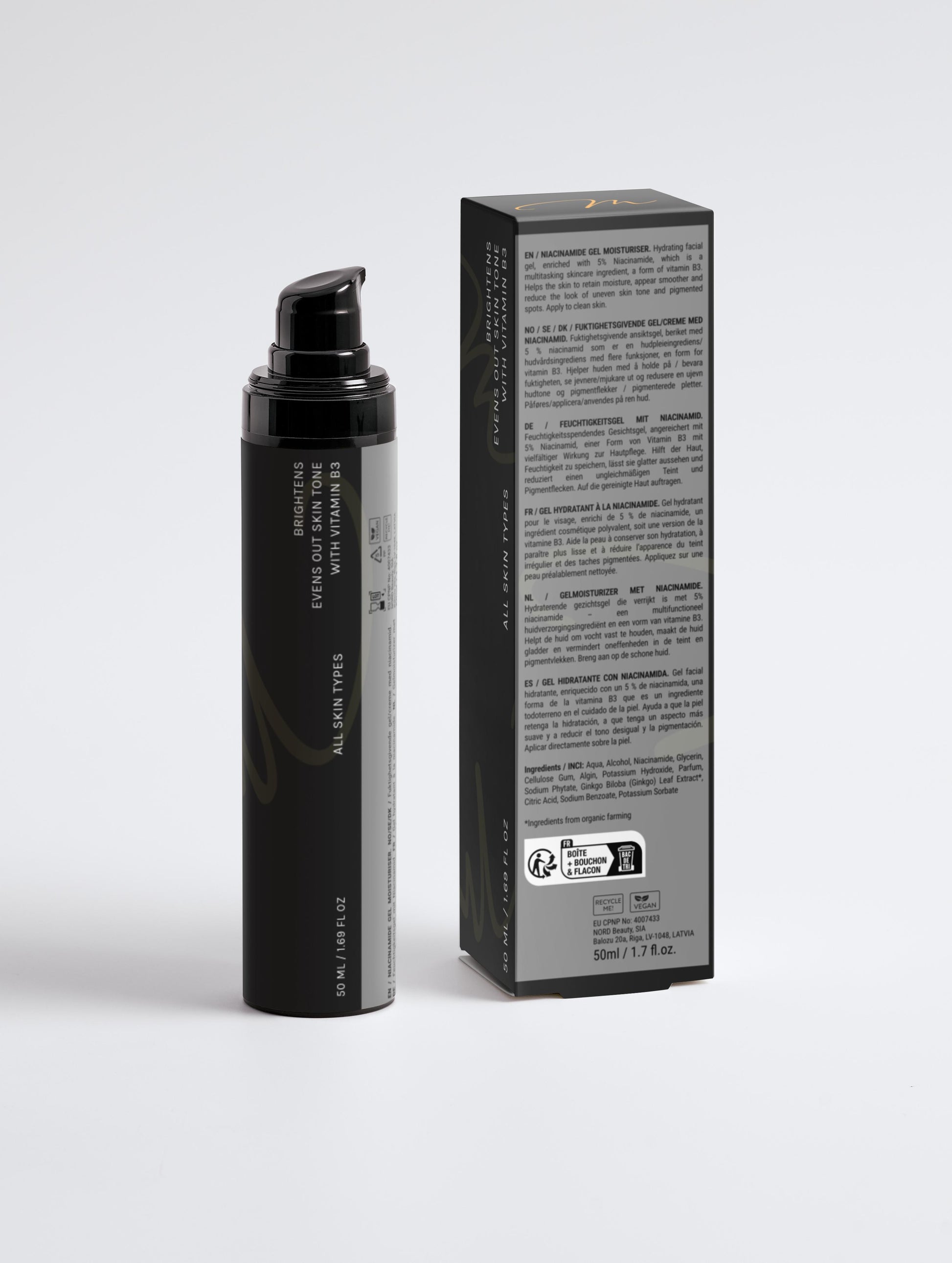 Hydrating facial gel, enriched with 5% Niacinamide, which is a multitasking skincare ingredient, a form of vitamin B3. Helps the skin to retain moisture, appear smoother and reduce the look of uneven skin tone and pigmented spots.